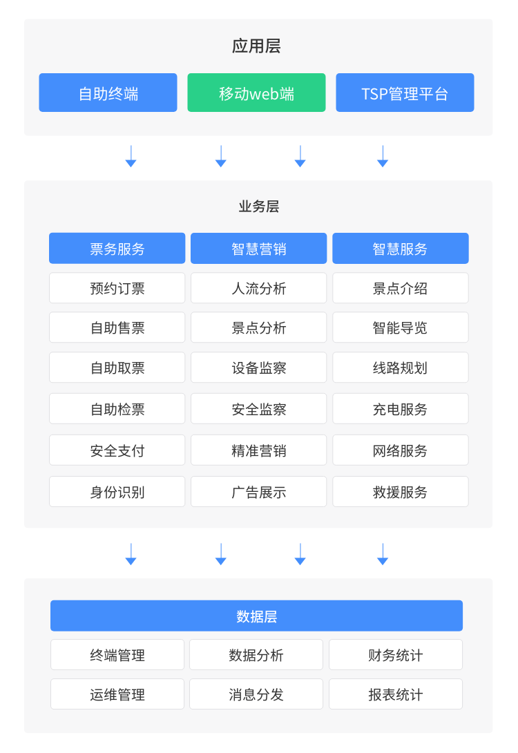 幫助景區(qū)定制微信公眾號、手機(jī)APP,并打通多種支付方式,可實(shí)現(xiàn)線上售票、景點(diǎn)介紹、景區(qū)導(dǎo)覽、線路規(guī)劃、景點(diǎn)實(shí)時(shí)人流量檢測、廣告精準(zhǔn)營銷、APP下載等功能。