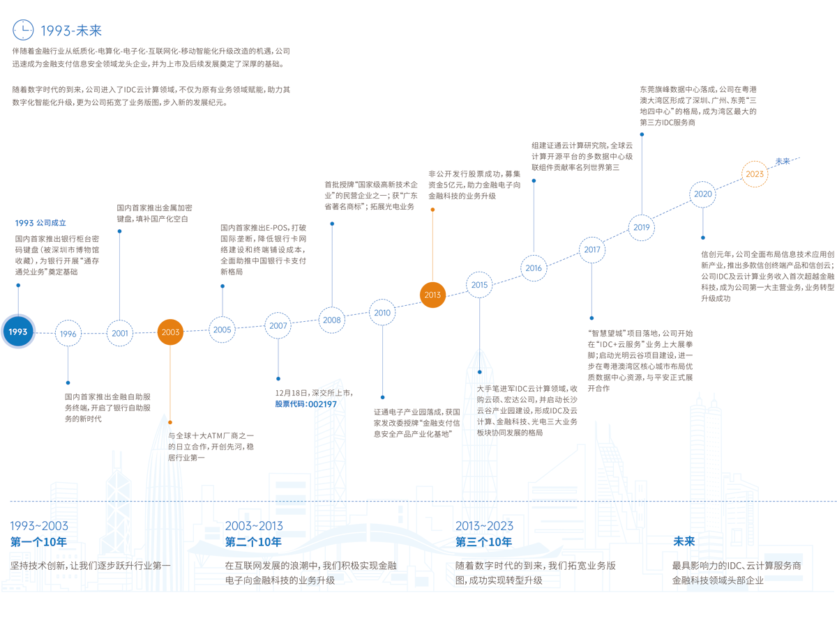 經(jīng)過二十多年的發(fā)展,證通電子已經(jīng)發(fā)展成為涵蓋IDC及云計(jì)算、金融科技、照明科技三大業(yè)務(wù)板塊的高新技術(shù)企業(yè)。公司在深圳、長沙和東莞建設(shè)了3座產(chǎn)業(yè)園,在深圳光明、廣州南沙、東莞石碣、東莞旗峰、長沙望城和武漢神狐共擁有6個大型互聯(lián)網(wǎng)數(shù)據(jù)中心,在深圳南山和光明、廣州、東莞、長沙和西安設(shè)立了6個研發(fā)中心,在全國分布28個售后服務(wù)中心和182個售后服務(wù)網(wǎng)點(diǎn)。