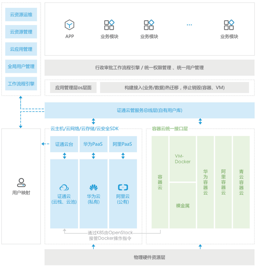 ????????證通多云/混合云平臺(tái)支持從裸金屬服務(wù)器開始實(shí)現(xiàn)資源池快速構(gòu)建,集成管理各大云的平臺(tái)。通過一體化的管理平臺(tái)對(duì)資源池軟硬件等資源進(jìn)行統(tǒng)一地監(jiān)控、配置、部署和調(diào)度,以及進(jìn)行云服務(wù)管理相適應(yīng)的流程和權(quán)限管理等,為企業(yè)數(shù)據(jù)中心的云計(jì)算基礎(chǔ)架構(gòu)虛擬化與云業(yè)務(wù)運(yùn)營提供解決方案。