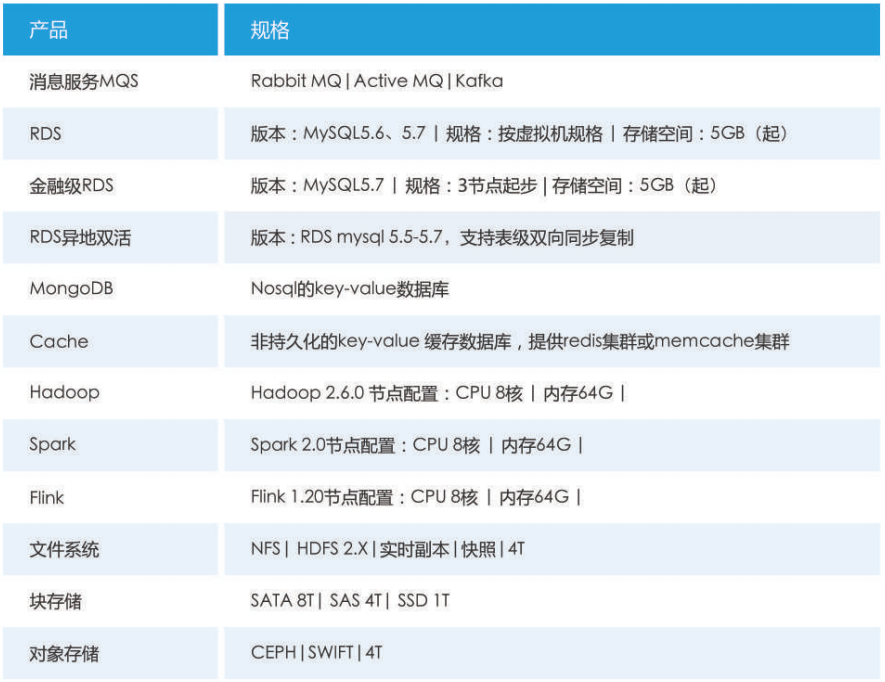 服務與公共組件平臺,提供關系型數(shù)據(jù)庫、消息中間件、塊存儲、