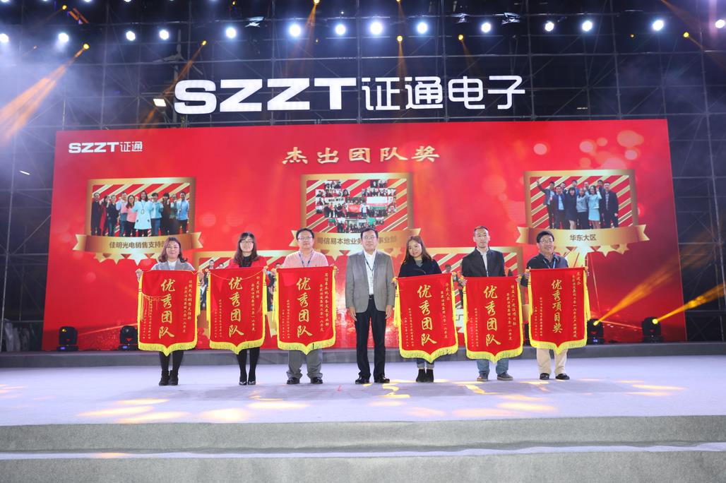 ?? 曾總提出,“2017年證通電子應(yīng)明確戰(zhàn)略目標(biāo),把握業(yè)務(wù)方向、思路以及重點(diǎn)工作,推進(jìn)管理升級,形成管理沉淀,豐富證通的組織文化;改善組織機(jī)能,形成目標(biāo)導(dǎo)向的組織績效管理;提升人員素質(zhì)和基本技能。2016年證通電子成績卓然,2017年更該奮起。筑夢未來,揚(yáng)帆啟航”。在證通電子總裁曾勝強(qiáng)先生的精彩致辭過后,迎春晚會暨2016年度表彰大會正式開始。本次大會共表彰了2016年具有杰出表現(xiàn)的年度優(yōu)秀員工70名、杰出員工3名及優(yōu)秀團(tuán)隊(duì)5支,并由到場領(lǐng)導(dǎo)為他們頒發(fā)綬帶、錦旗和獲獎證書。