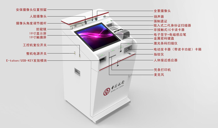 本產(chǎn)品采用簡潔、明亮的設(shè)計風(fēng)格,對各功能區(qū)加以區(qū)分,整機(jī)尺寸采用最小原則,設(shè)計緊湊,良好的人機(jī)交互操作,具有友好、可信、安全、科技的綜合應(yīng)用屬性。機(jī)身上設(shè)有全景攝像頭,集激光條碼掃描,二代身份證、指紋掃描,電子簽名、電動發(fā)卡讀卡等功能于一體,切實(shí)根據(jù)用戶的需要訂制帶有不同功能的機(jī)器。