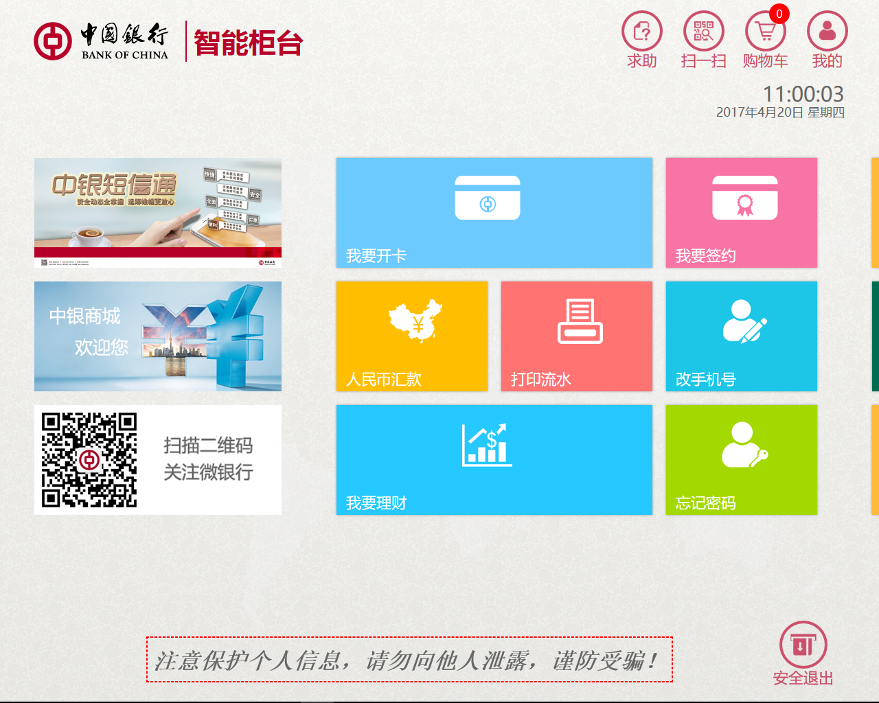 智能柜臺可以辦理開卡、激活、簽約、理財、人民幣匯款、跨境匯款、購匯、掛失、打印流水、查詢余額、信息修改、客戶信息補(bǔ)錄、更換ETOKEN、修改密碼、重置密碼、手機(jī)號匯款等19項(xiàng)非現(xiàn)金業(yè)務(wù),為客戶免去了大量繁冗、復(fù)雜的銀行大堂業(yè)務(wù)流程,提高銀行整體業(yè)務(wù)效率。