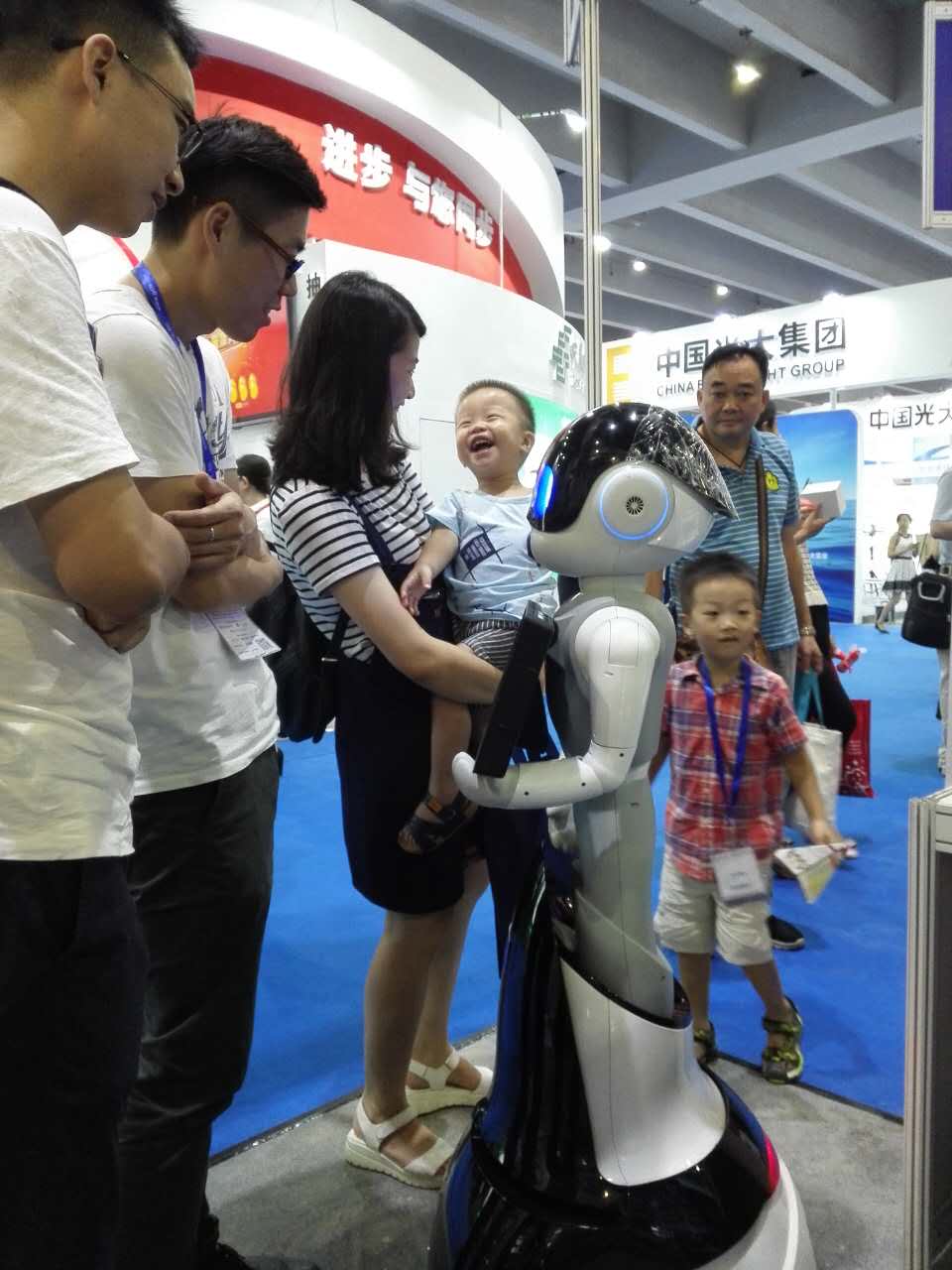展會(huì)現(xiàn)場(chǎng),不知誰(shuí)家的小萌娃被FINBOT逗得直樂(lè)呵。