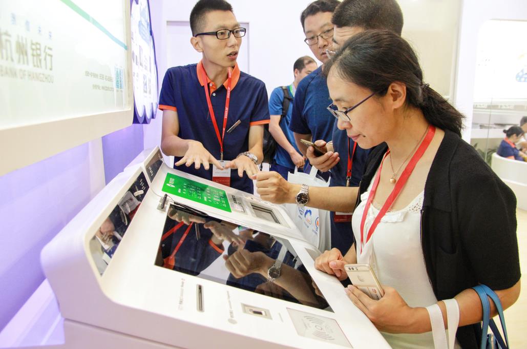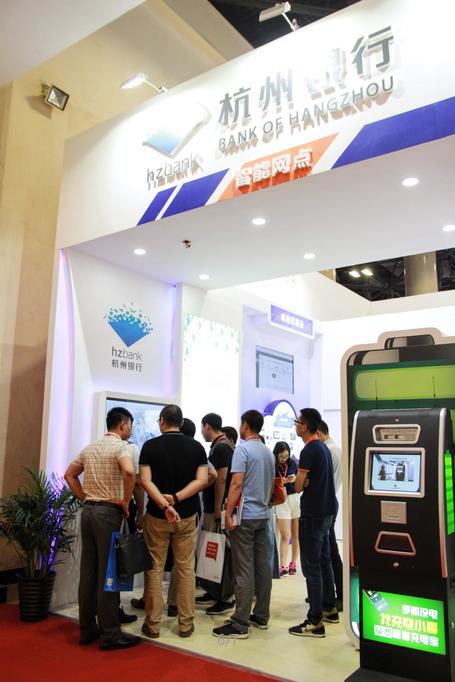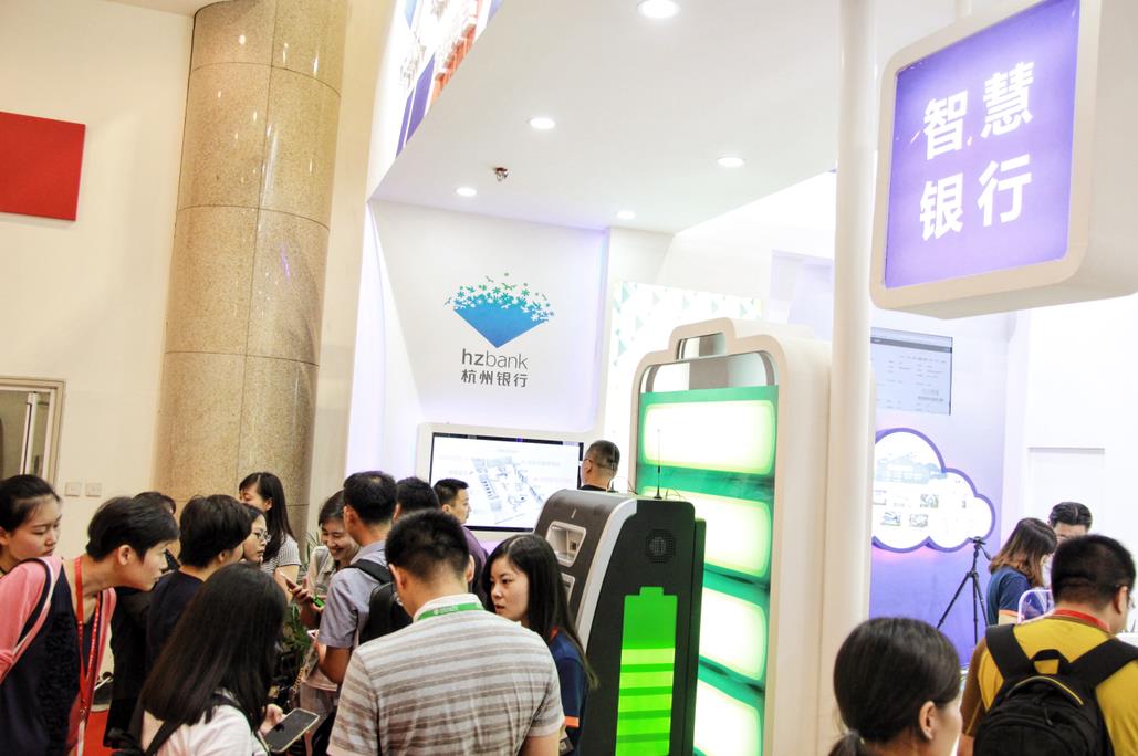 人流不斷的杭州銀行智慧方案展示區(qū)
