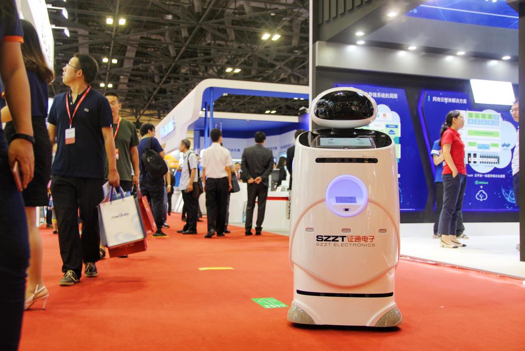 7月27日上午9點(diǎn),中國(guó)人民銀行副行長(zhǎng)范一飛宣布展覽正式開(kāi)幕,開(kāi)館后,證通展廳陸續(xù)圍滿了前來(lái)參觀的觀眾。本次展會(huì)證通帶來(lái)了金融領(lǐng)域不同板塊的業(yè)務(wù)展示,展廳分為聚合支付、IDC及云計(jì)算、機(jī)器互聯(lián)云、智慧銀行四大展示區(qū),通過(guò)現(xiàn)場(chǎng)設(shè)備演示以及生動(dòng)的產(chǎn)品講解,向觀眾展示證通在金融領(lǐng)域的業(yè)務(wù)實(shí)力。本次展會(huì)證通還頗有誠(chéng)意的帶來(lái)了銀行服務(wù)機(jī)器人、“微信存取款”智慧柜員機(jī)兩大產(chǎn)品設(shè)備的首秀,并成為全場(chǎng)矚目的焦點(diǎn)之一。