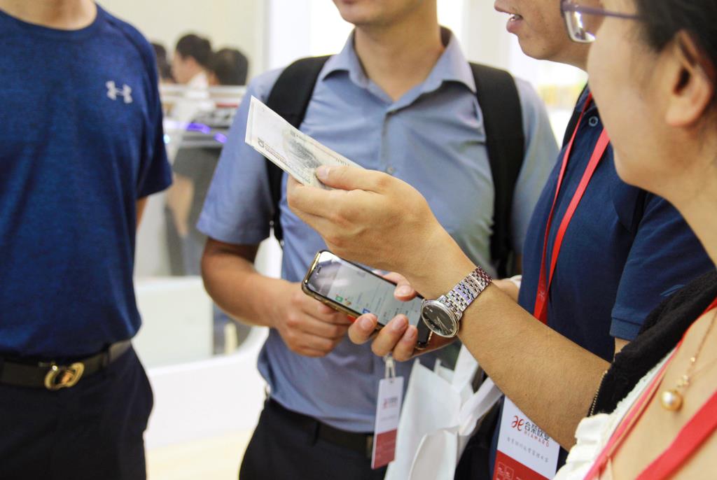 同時(shí),這款機(jī)器還頗具創(chuàng)新地加入了現(xiàn)金模塊,使其在辦理非現(xiàn)金業(yè)務(wù)的同時(shí)也能進(jìn)行銀行卡、存折存取款的辦理,可謂是匠心獨(dú)具。展會(huì)中還發(fā)生了一個(gè)小插曲,由于人氣太旺,機(jī)器中提前預(yù)備好的數(shù)千元“微信提現(xiàn)”鈔票被觀眾全部提取完,工作人員補(bǔ)鈔忙不停。