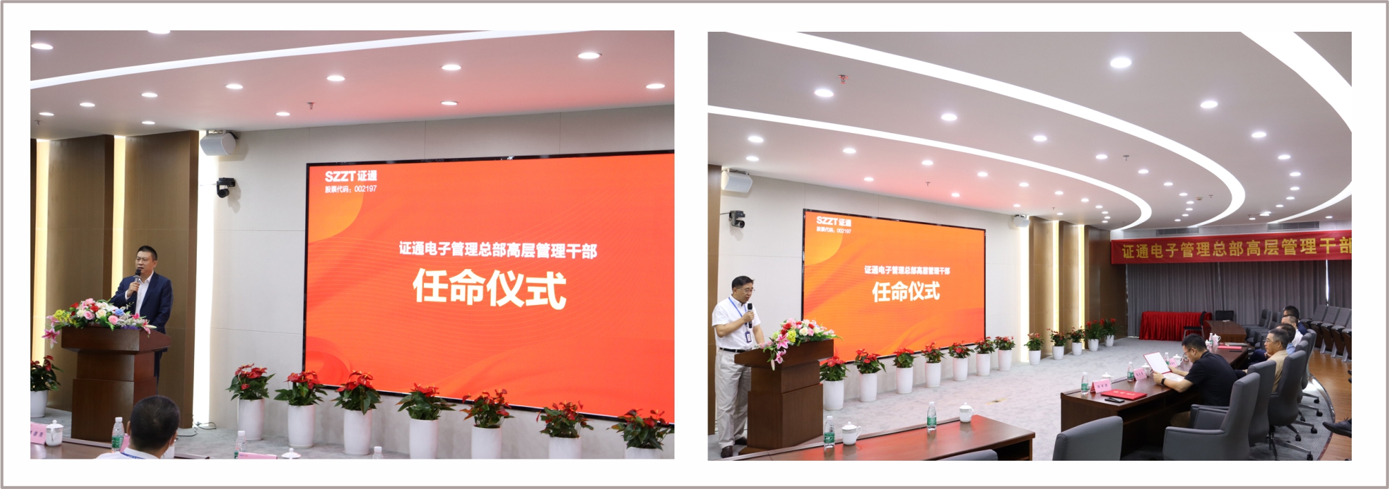 為符合公司戰(zhàn)略發(fā)展和業(yè)務(wù)的需要,為集團選拔出優(yōu)秀的管理干部。4月29日上午9時,證通電子“管理總部高層管理干部任命儀式”在H棟12樓階梯會議室隆重舉行,這是證通歷史上首次舉辦的干部任命儀式。公司董事長、總裁曾勝強,公司常務(wù)副總裁、IDC云計算事業(yè)部總經(jīng)理楊義仁,公司副總裁、董事會秘書、自助科技事業(yè)部總經(jīng)理傅德亮,公司財務(wù)總監(jiān)程峰武,總裁助理李華峰,安全支付事業(yè)部總經(jīng)理程勝春,光電事業(yè)部總經(jīng)理胡艷平,新上任的總裁助理薛寧、唐佳,人力資源總監(jiān)張文波以及全集團中層及以上管理干部通過線上和線下的方式共同出席了任命儀式。