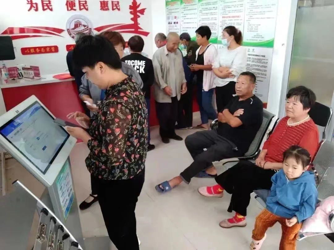 ▲河北滄州滄縣八義莊村居民使用“裕農(nóng)通”互動(dòng)觸摸屏進(jìn)行自助繳費(fèi)