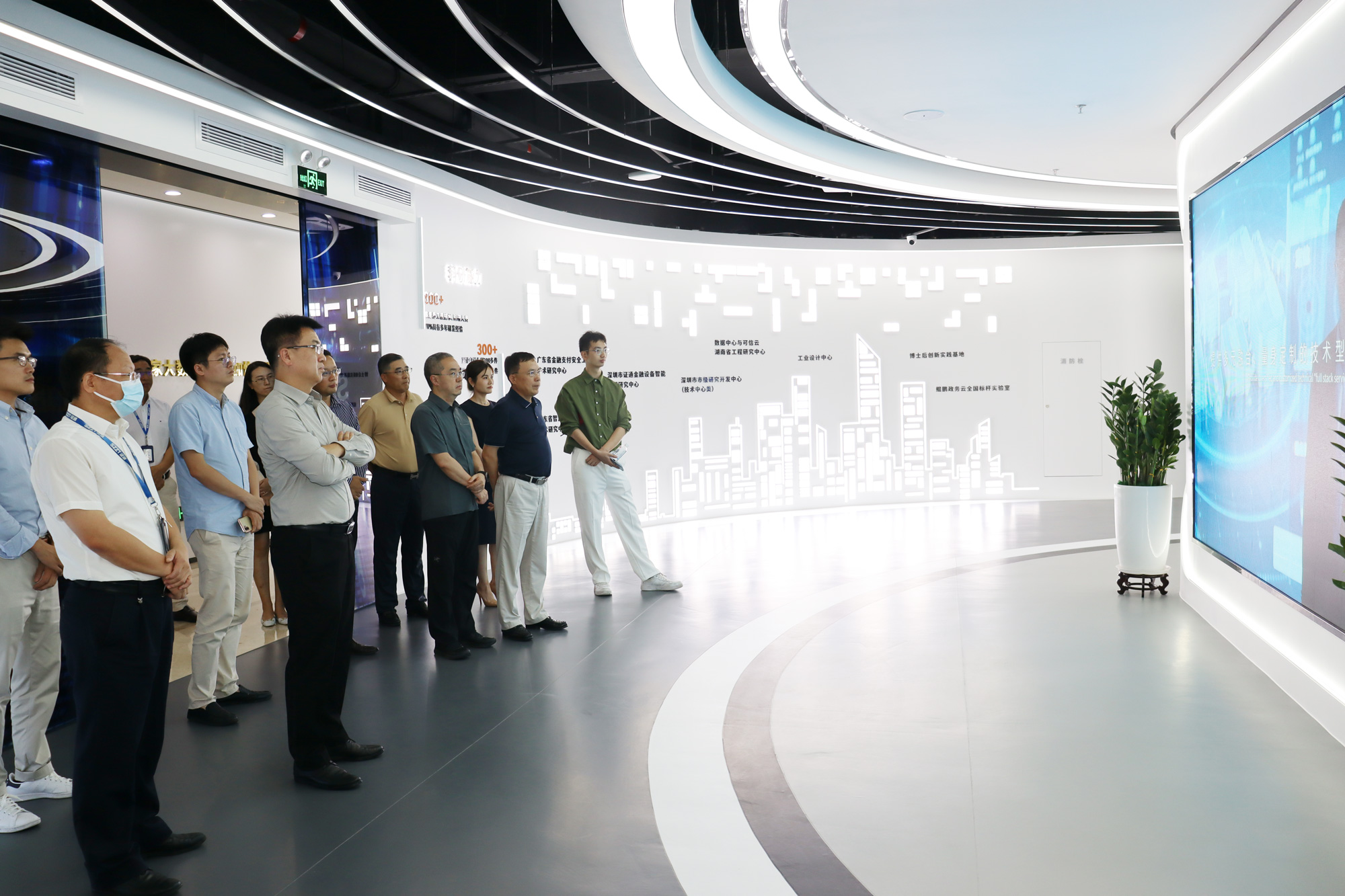 曾總對哈工大張校一行表示熱烈地歡迎,并帶領(lǐng)大家參觀了證通電子品牌體驗館。曾總表示,證通電子作為以金融科技、IDC及云計算業(yè)務(wù)為主業(yè)的科技型上市公司,一直以來,堅持走高質(zhì)量發(fā)展道路,持續(xù)注重研發(fā)創(chuàng)新。人工智能、大數(shù)據(jù)、云計算、區(qū)塊鏈、隱私計算、數(shù)字人民幣、可信云等技術(shù)及其應(yīng)用是公司持續(xù)關(guān)注的方向。期待雙方在未來的合作中,增進(jìn)交流、攻克技術(shù)難關(guān)、形成一批高價值的項目成果,支撐關(guān)鍵項目落地,也期待哈工大(深圳)計算機(jī)科學(xué)與技術(shù)學(xué)院為證通電子持續(xù)培養(yǎng)和輸送關(guān)鍵技術(shù)人才。