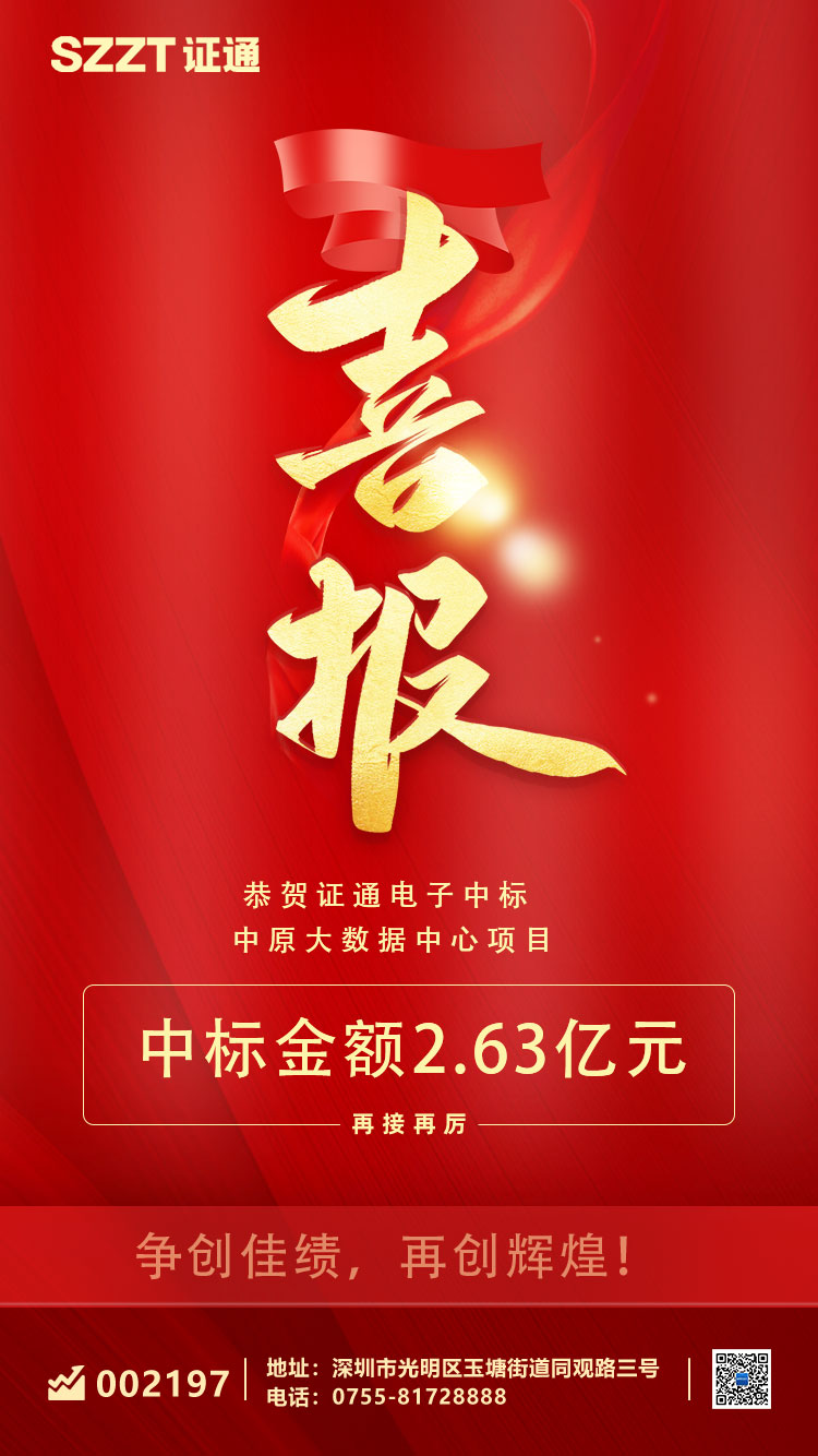 喜報!證通電子中標(biāo)2.63億元中原大數(shù)據(jù)中心項目