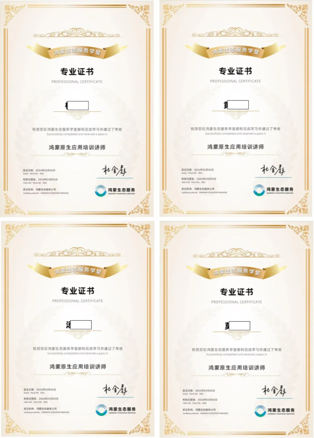 首批通過“鴻蒙原生應(yīng)用培訓(xùn)講師”認(rèn)證的講師證書
